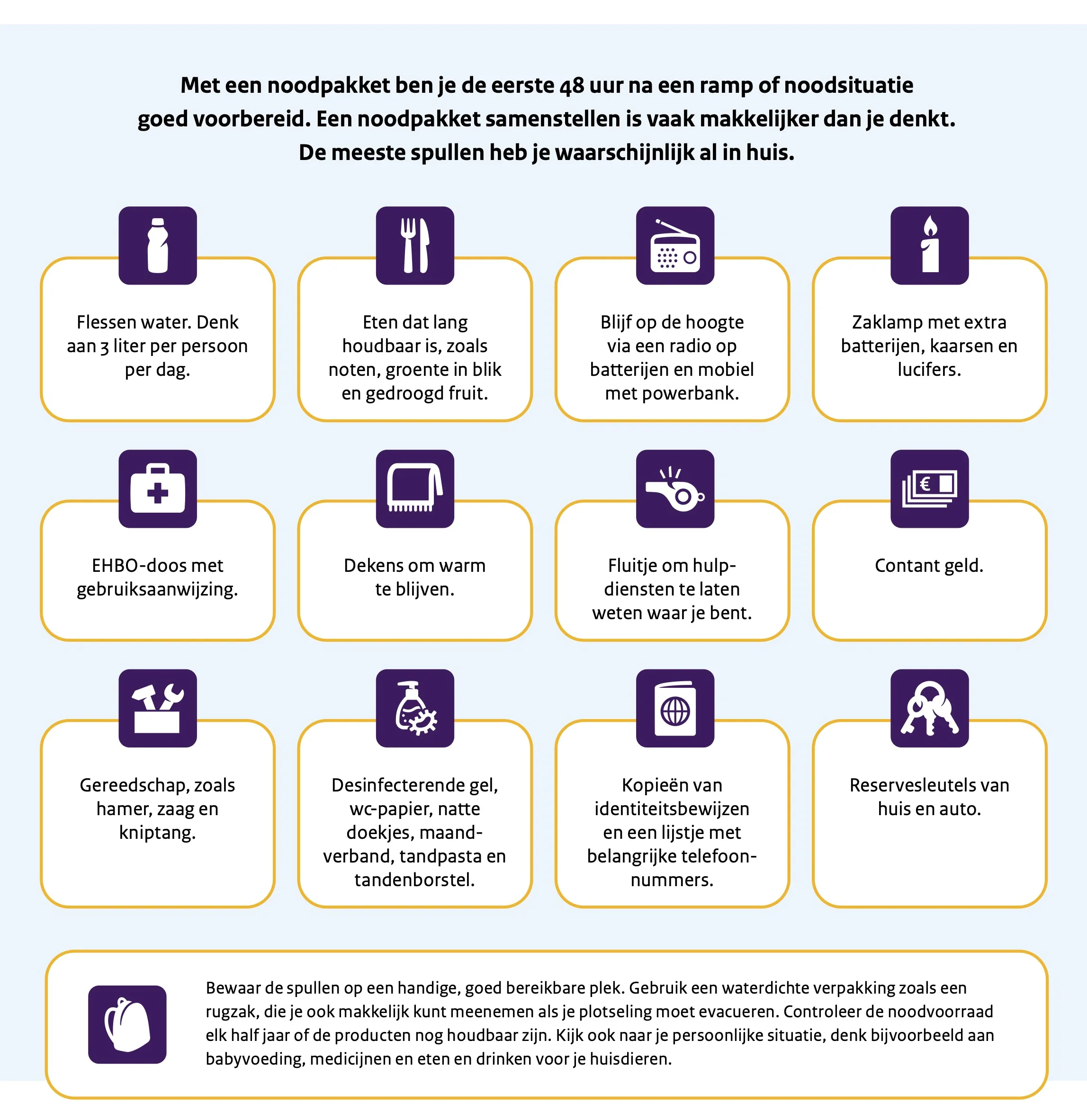 Dit pakket is perfect voor de meest waarschijnlijke situaties en is gebaseerd op het advies vanuit de overheid. De inhoud van dit pakket dien je zelf aan te schaffen. Nadat je dit webinar hebt aangeschaft ontvang je van ons een vragenlijst om in te vullen. Deze vragenlijst zullen we tijdens het gesprek doornemen en daarnaast maken we een noodplan op maat.